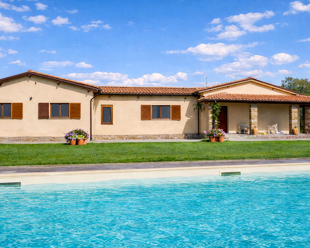 Durante l’estate la piscina diventa un luogo di quiete, dove l’acqua salata accarezza la pelle e il silenzio della campagna accompagna i momenti di relax, nel rispetto dell’ambiente e delle persone.